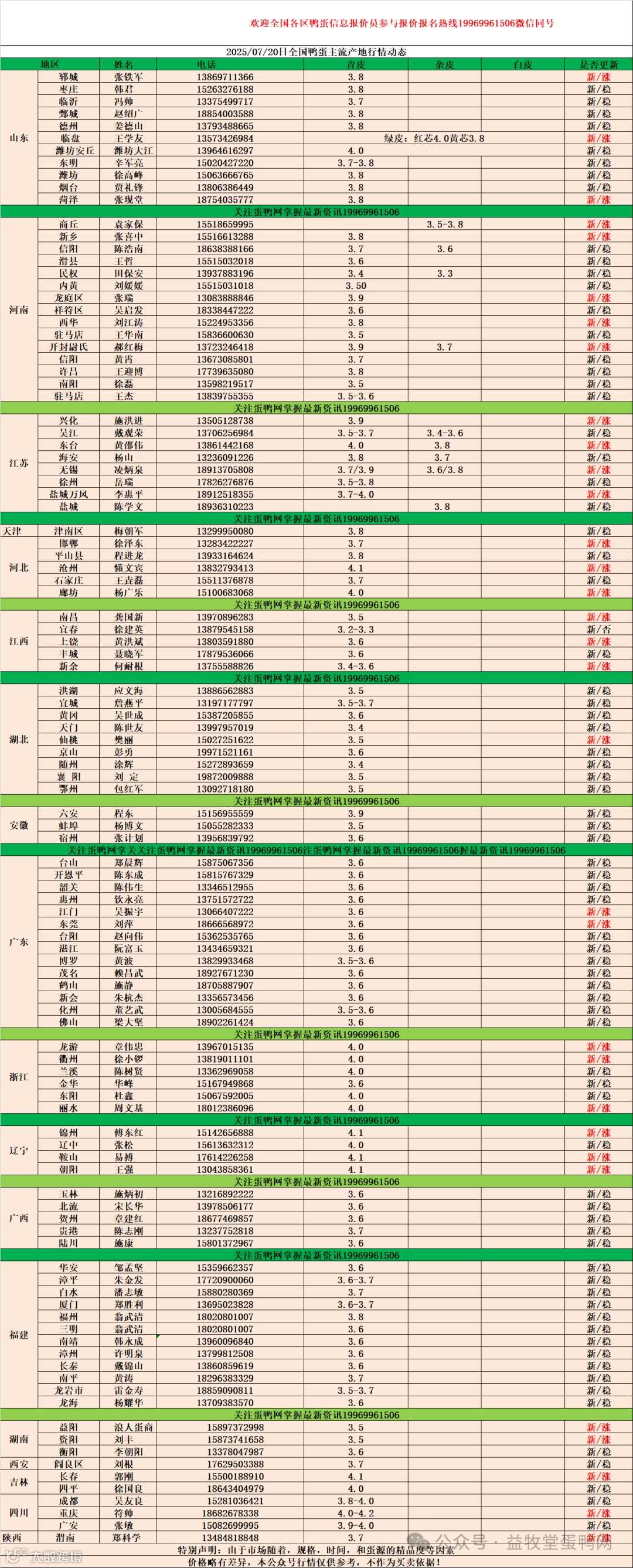 7月20日:初产至10个头2.6元,10个头至8个头3.3元,8个头至7.5个头3.7元,7.5个头至大蛋4.1元