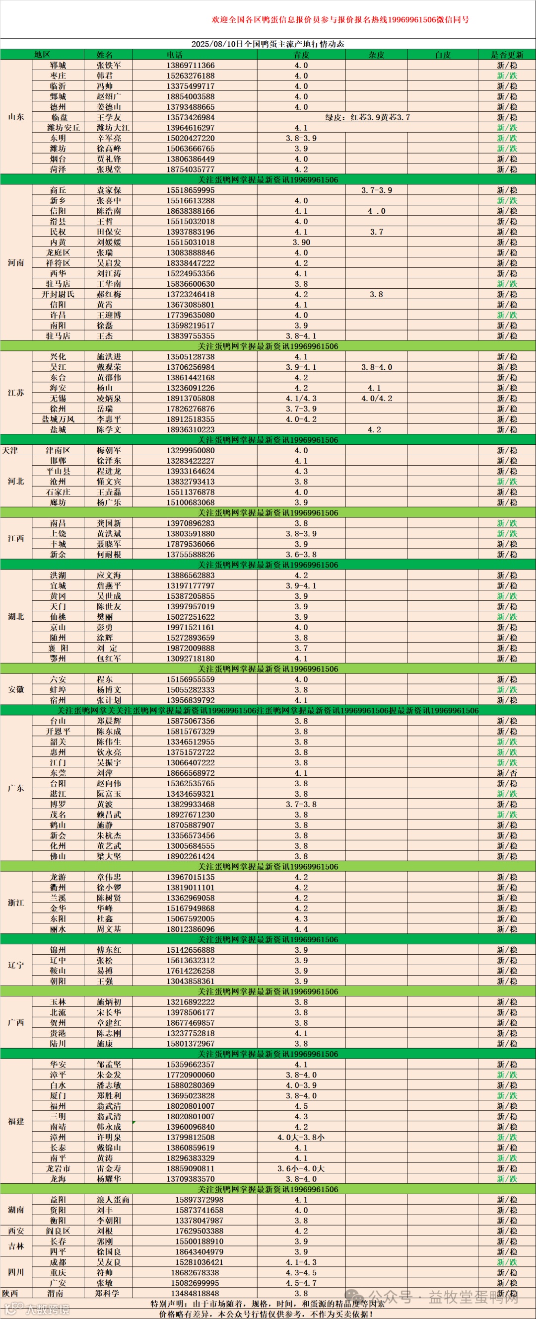 8月10日:初产至10个头2.5元,10个头至8个头3.4元,8个头至7.5个头3.7元,7.5个头至7.14个3.8元。7.14个至大蛋3.9元。