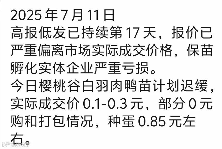| 一:25年7月12日北方白羽鸭苗报价(元/羽) | ||