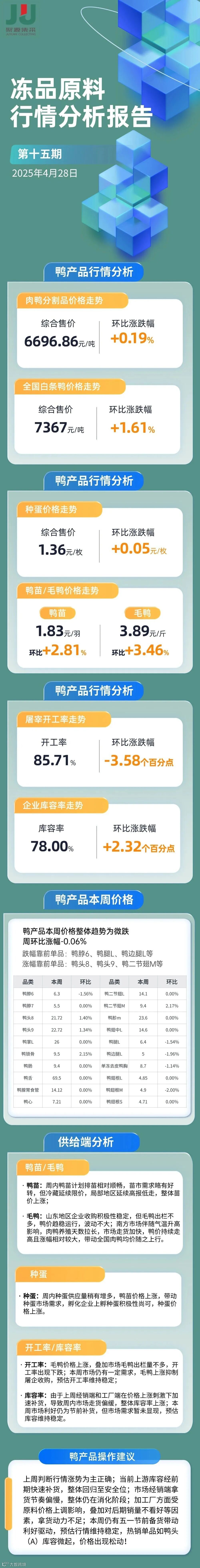 2025第15期冻品原料(鸭鸡猪牛)行情走势分析报告