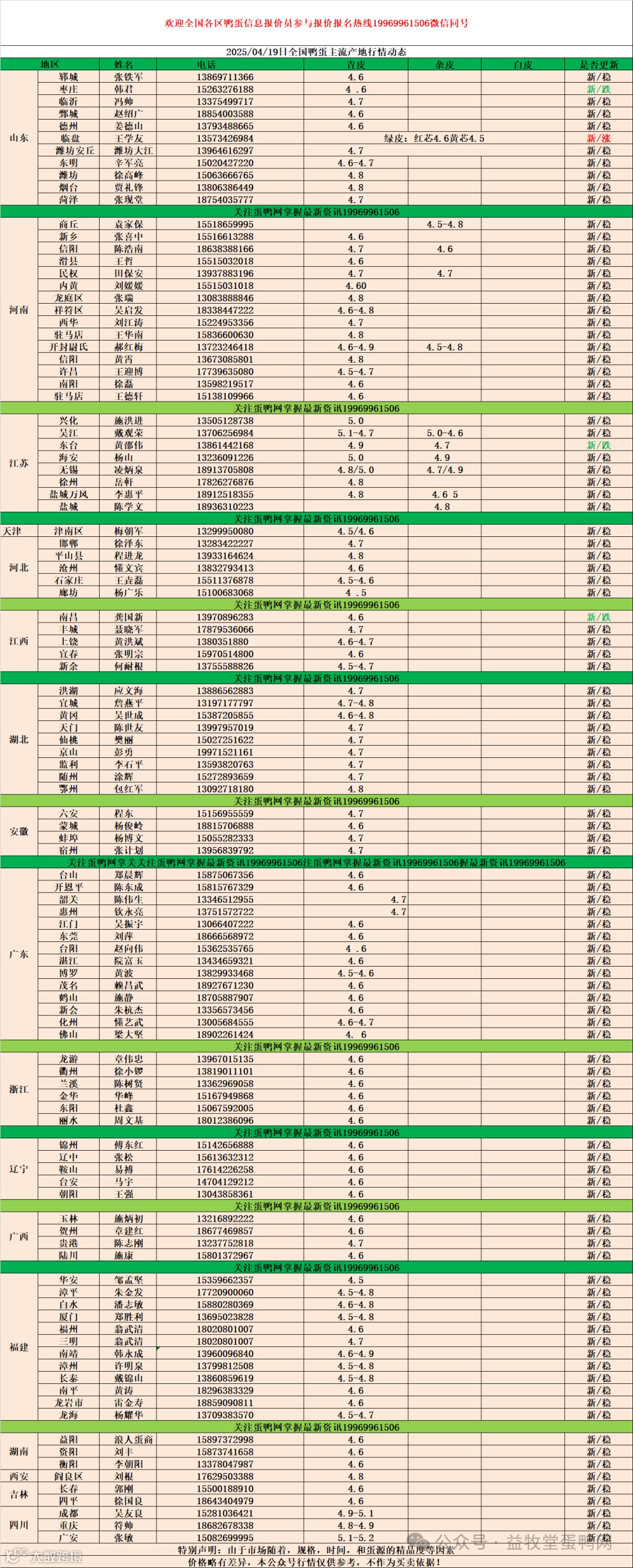 2025年4月19日商品鸭蛋报价 益牧堂水禽信息