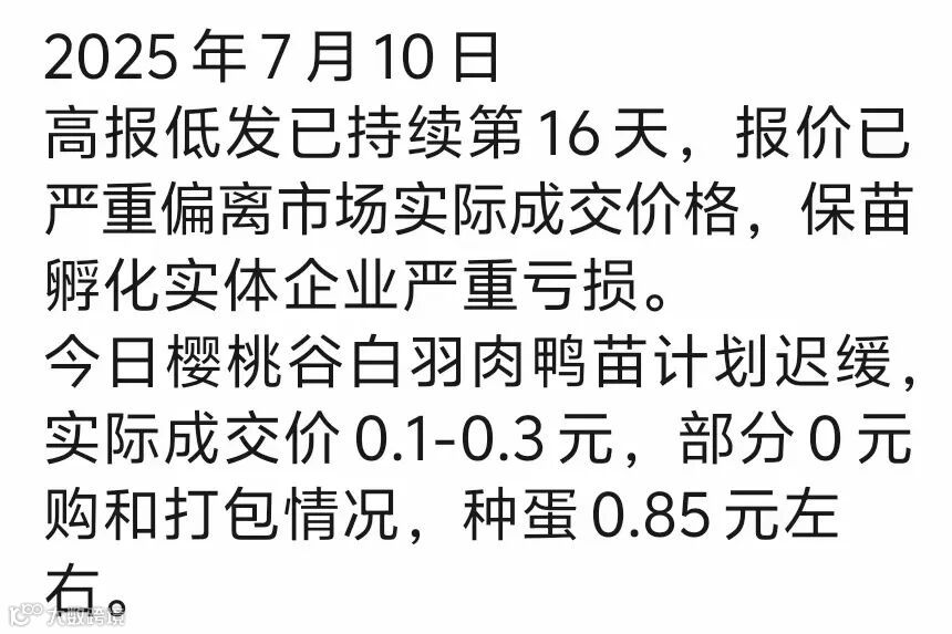 | 一:25年7月11日北方白羽鸭苗报价(元/羽) | ||
