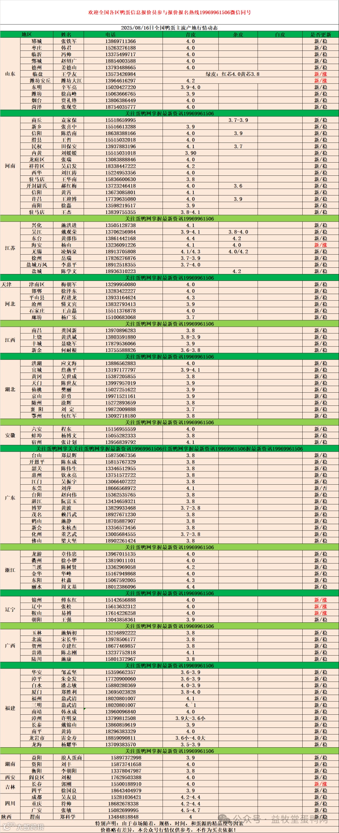 8月15日:初产至10个头2.5元,10个头至8个头3.4元,8个头至7.5个头3.7元,7.5个头至7.14个3.8元。7.14个至大蛋3.9元。