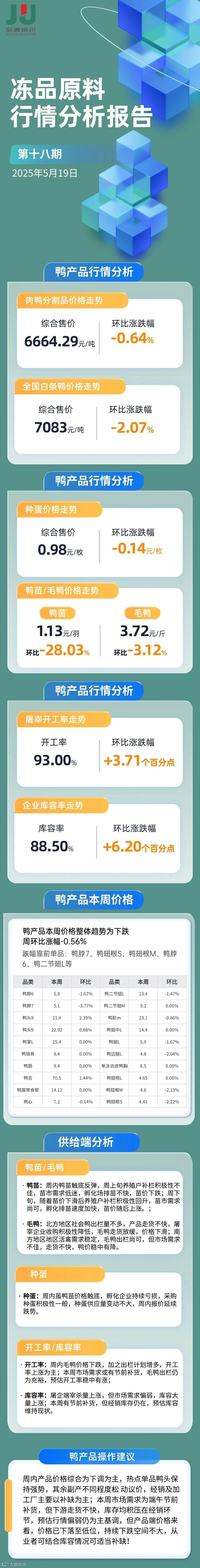 2025第18期冻品原料(鸭鸡猪牛)行情走势分析报告