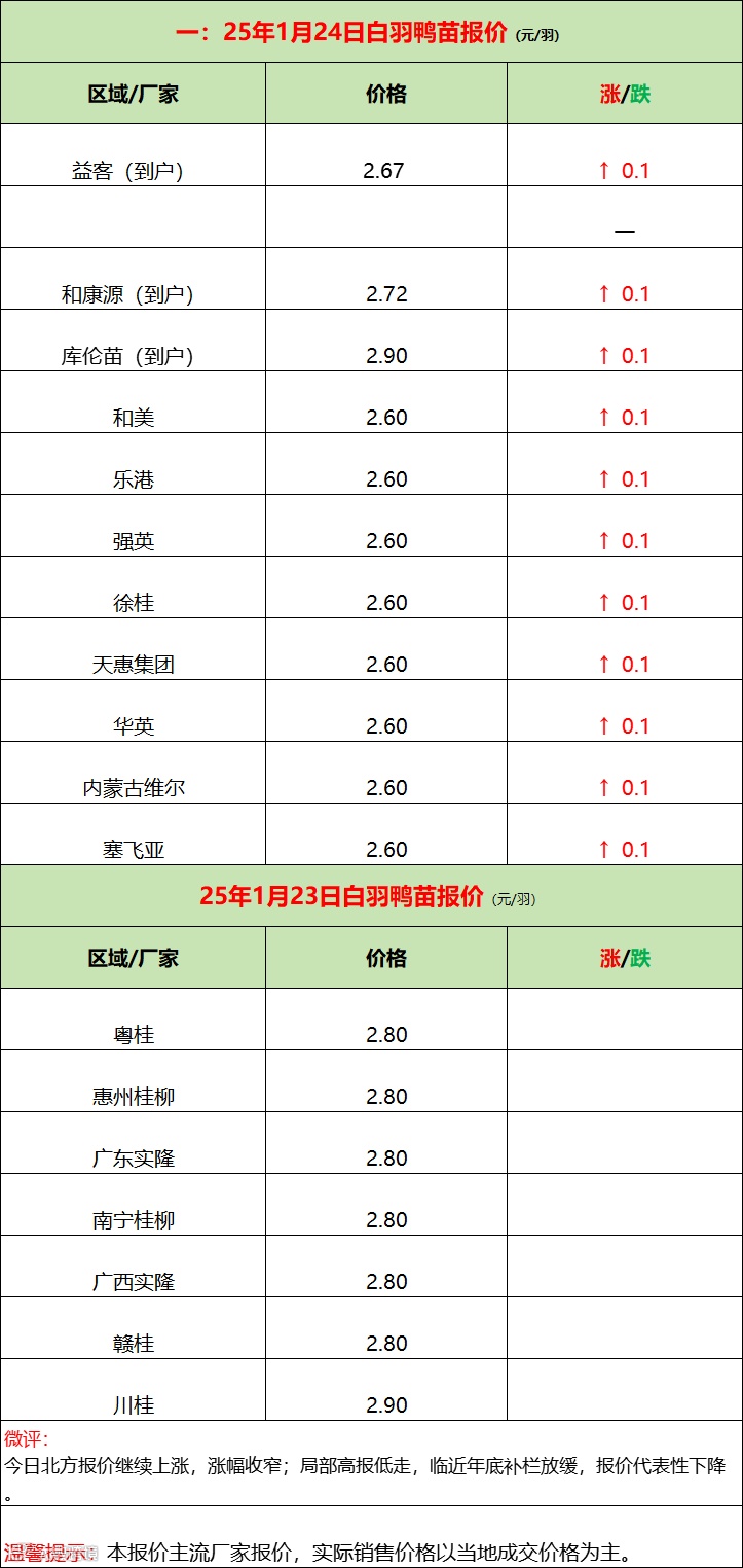 鸭苗报涨,局部低走!产品活禽临节乱价!!--2025年1月24日水禽行情简报 益牧堂水禽信息