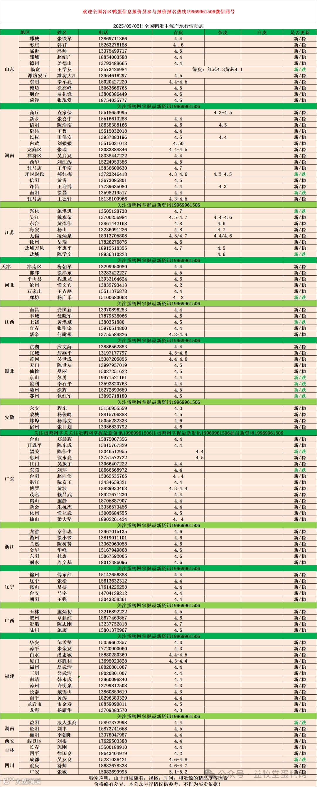 2025年5月2日商品鸭蛋报价 益牧堂水禽信息