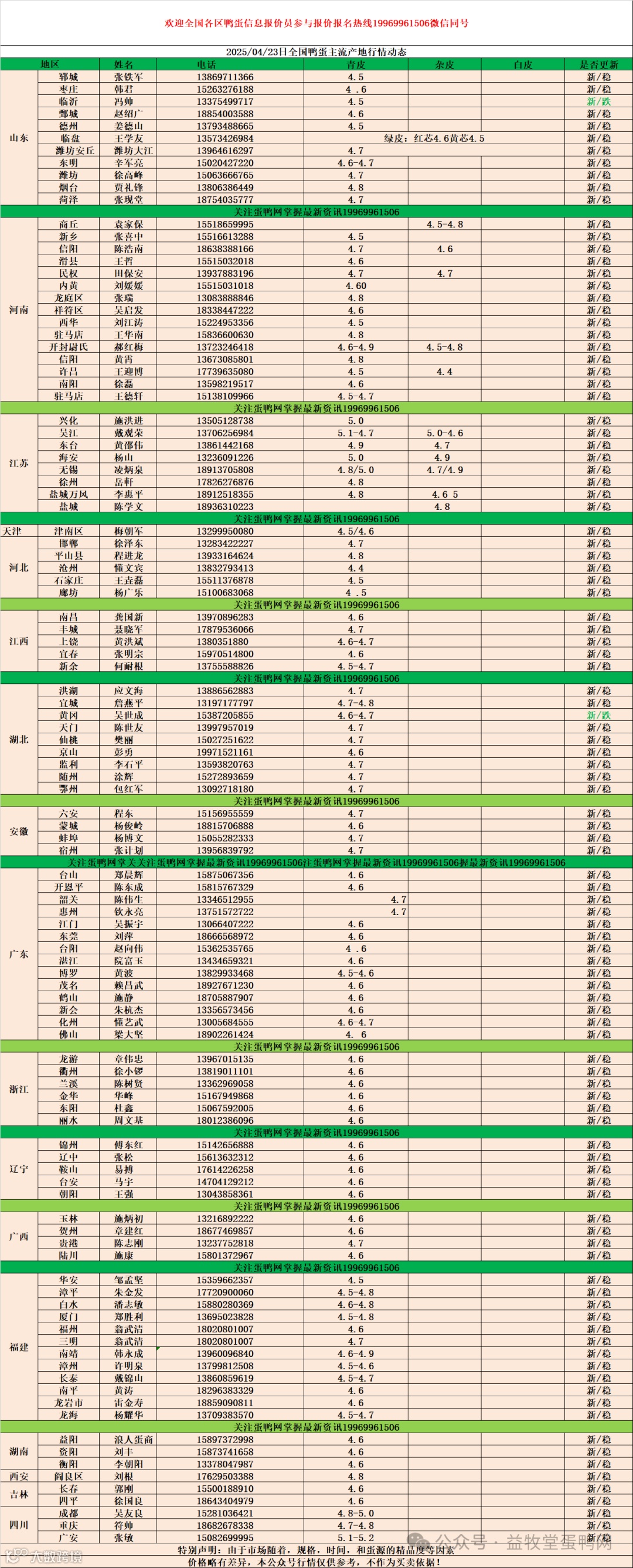 2025年4月23日商品鸭蛋报价 益牧堂水禽信息