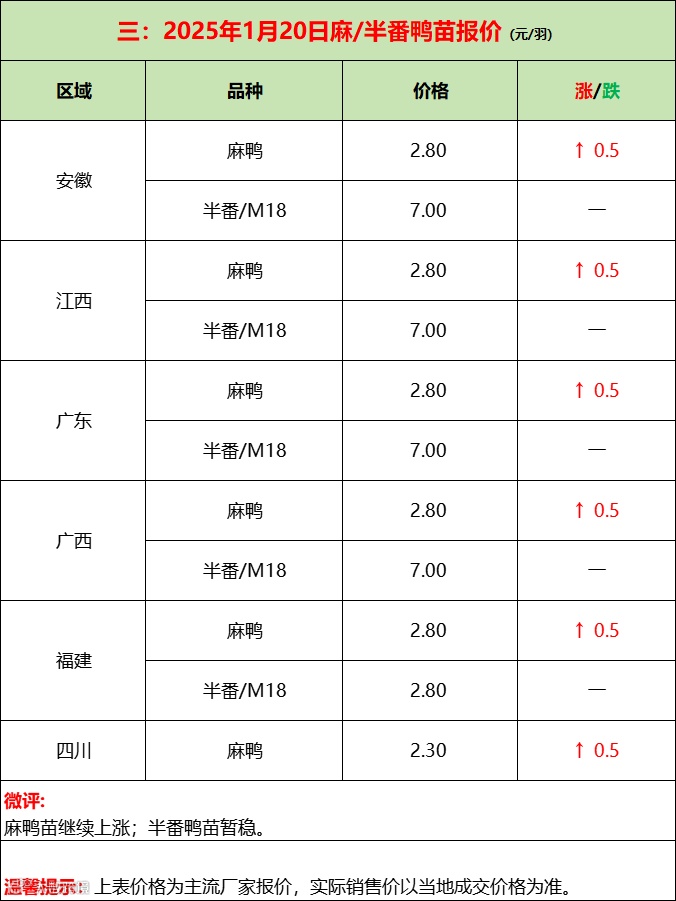 苗蛋继续上涨,活禽产品临节乱市!--2025年1月21日水禽行情简报