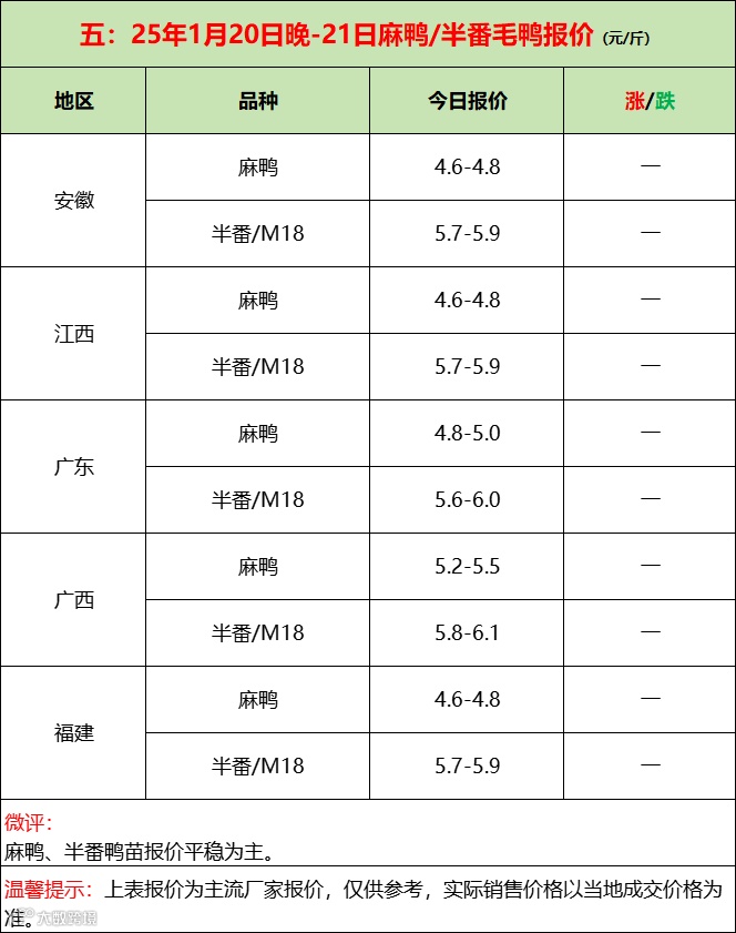 苗蛋继续上涨,活禽产品临节乱市!--2025年1月21日水禽行情简报 益牧堂水禽信息