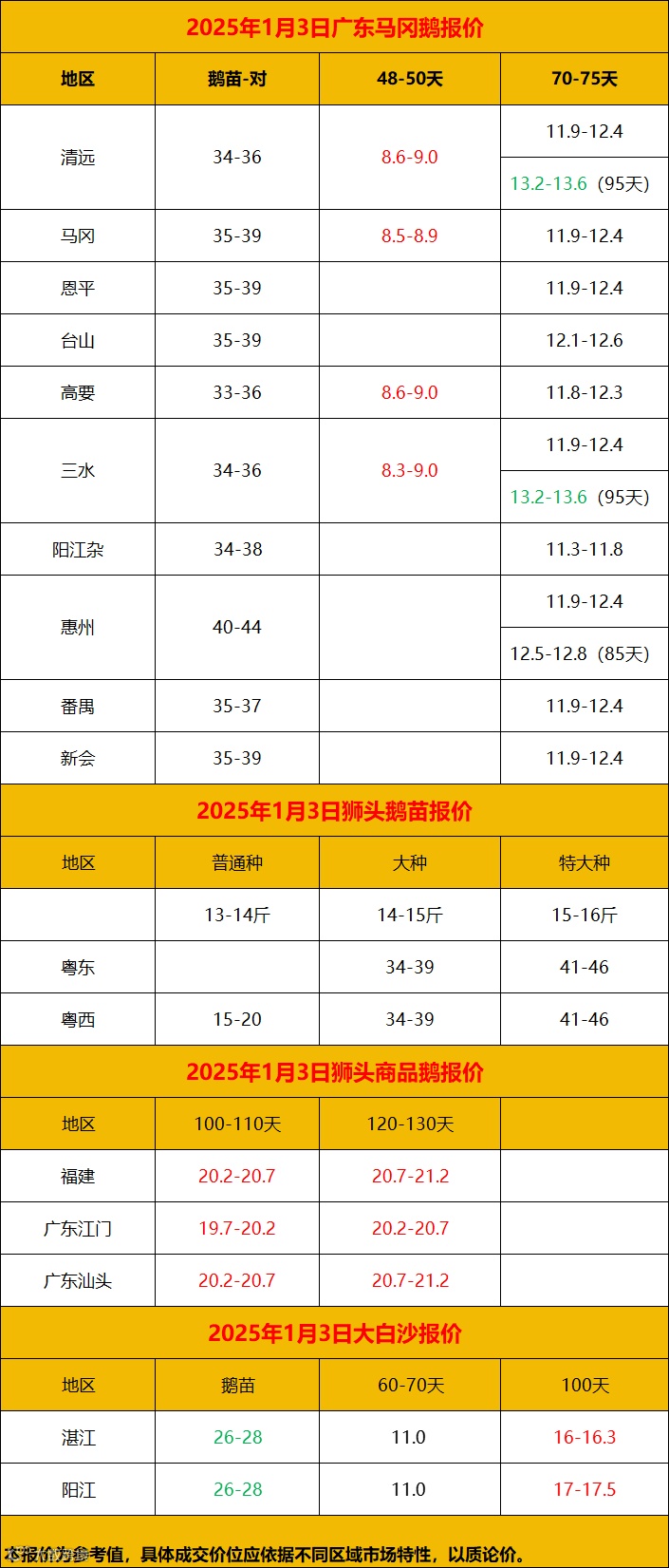 2025年1月4日鹅价快报