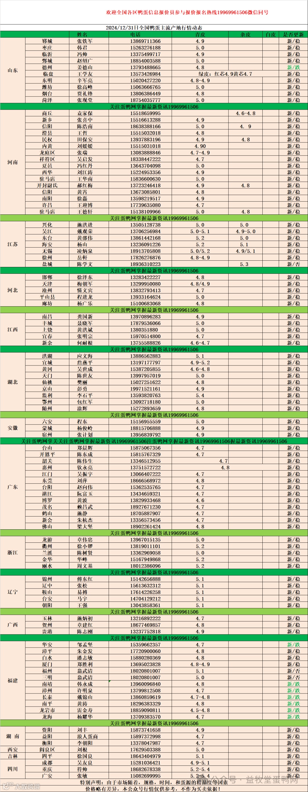 :屠宰厂收购价12元/斤左右,淘汰鸭价格受毛色,体重,品种等影响的变化较快。