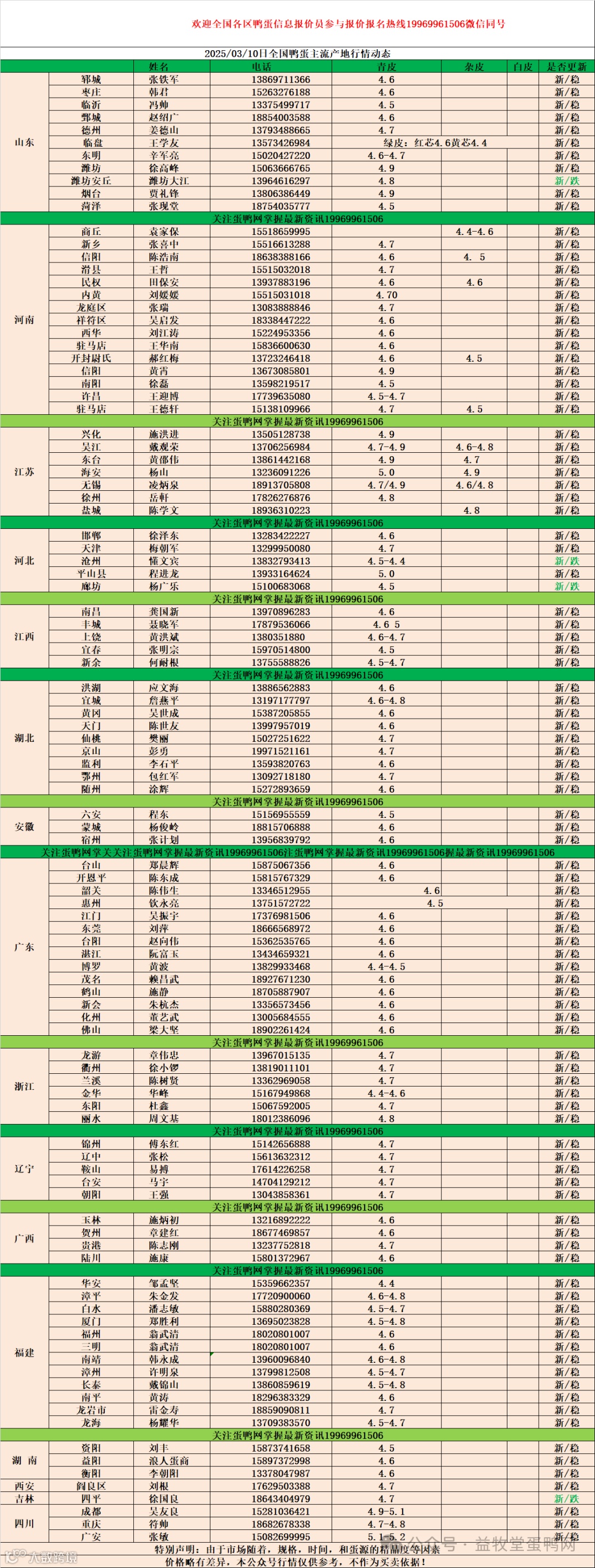 2025年3月10日商品鸭蛋报价 益牧堂水禽信息