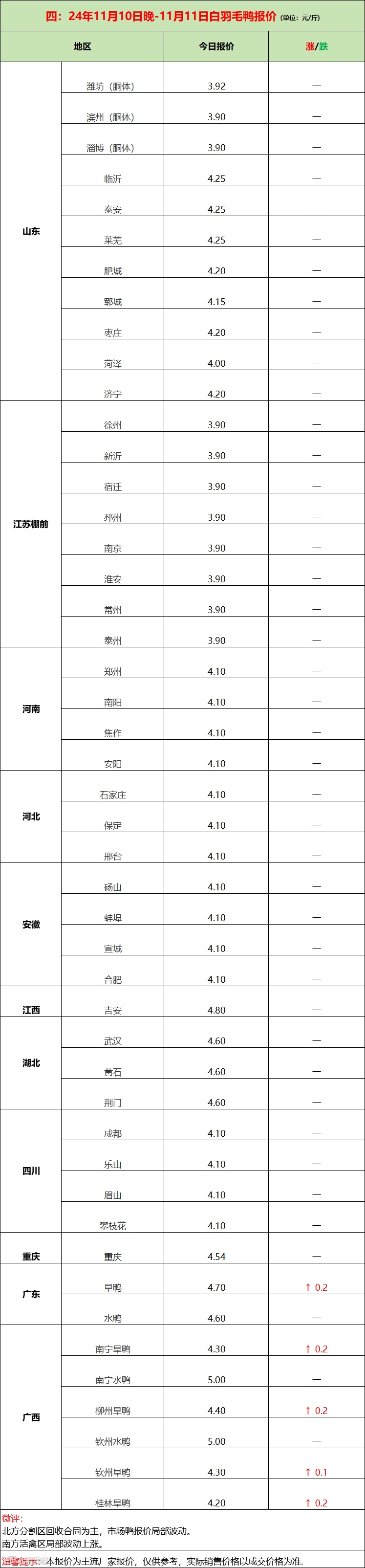 高报低走,进入淡季!--2024年11月11日水禽行情简报
