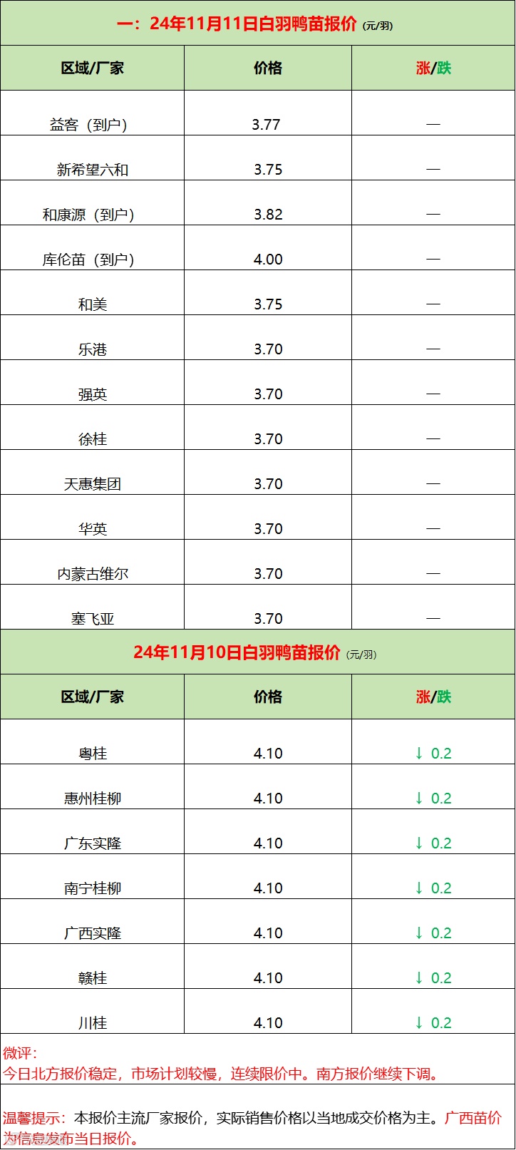 导读:鸭苗报稳,限价博弈激烈;产品弱稳,促走货有议价!