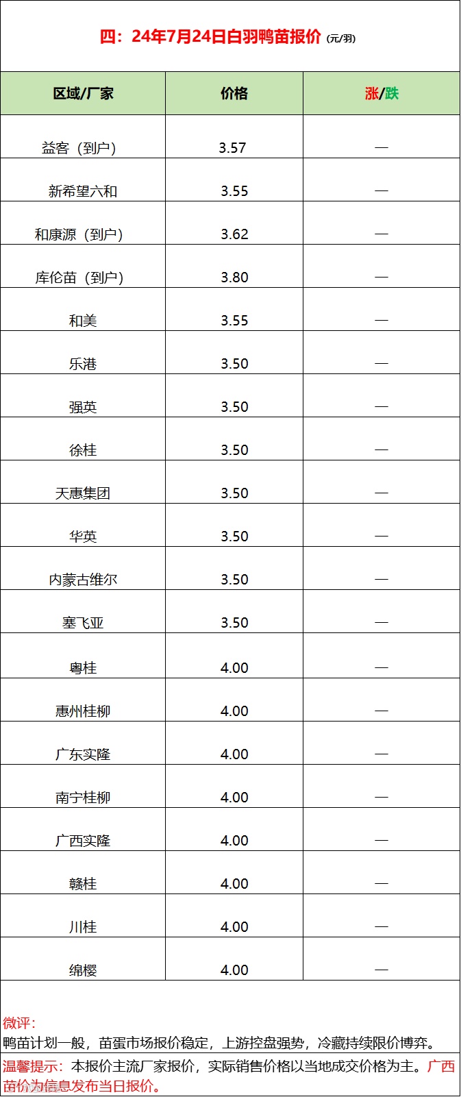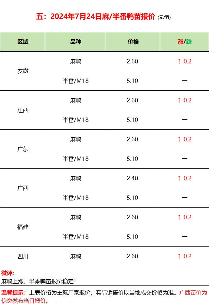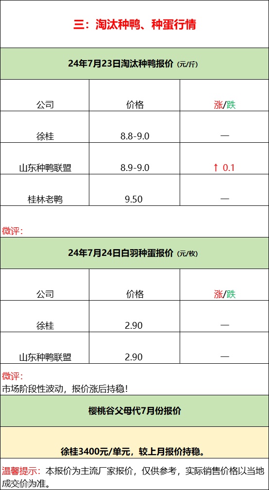 鸭苗博弈报稳,产品推涨雷声大雨点小;--2024年7月24日水禽行情简报 益牧堂水禽信息