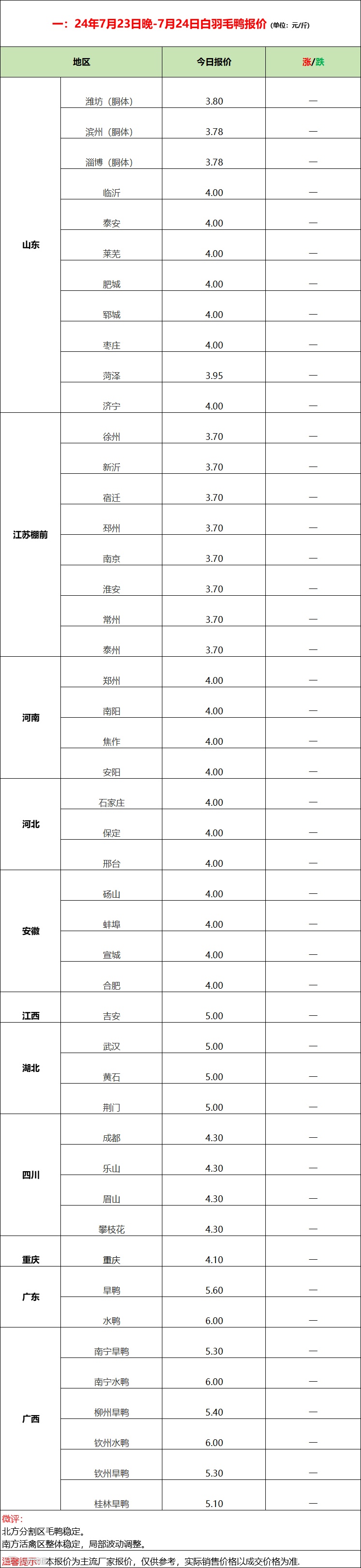鸭苗博弈报稳,产品推涨雷声大雨点小;--2024年7月24日水禽行情简报