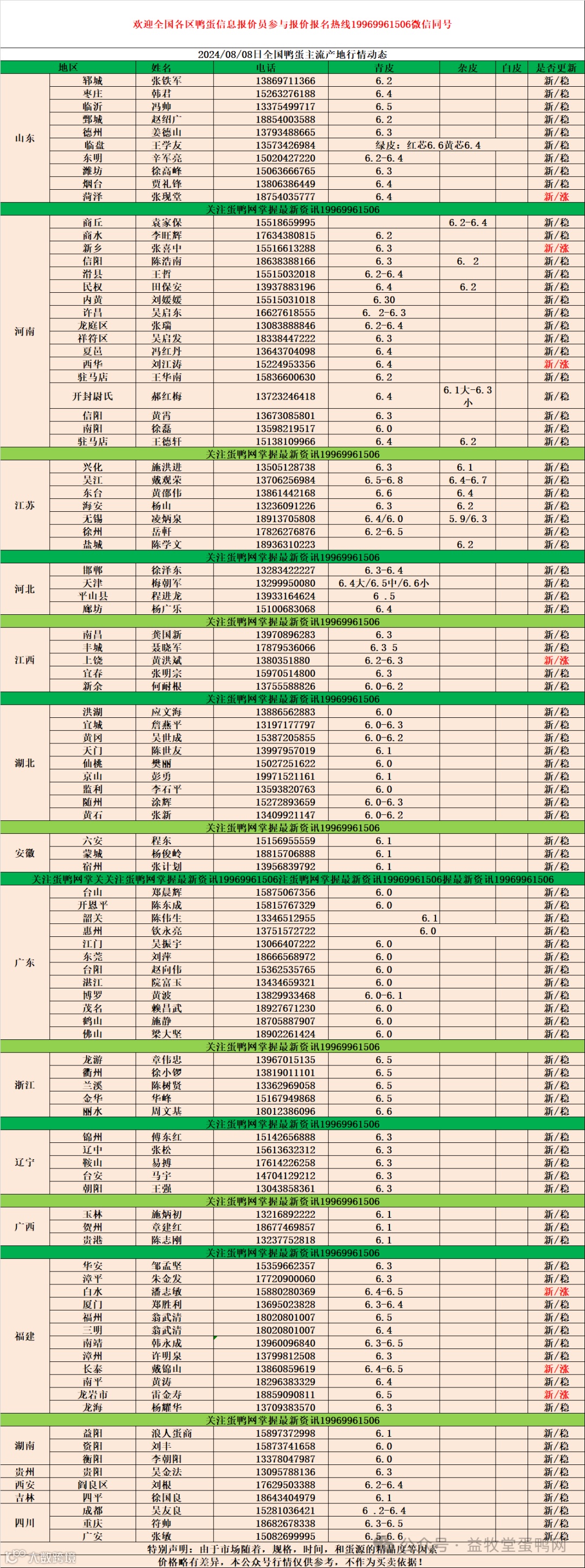 2024年8月8日商品鸭蛋报价