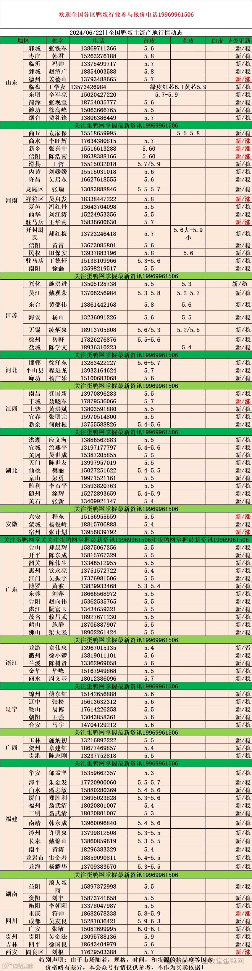 2024年6月22日商品鸭蛋报价