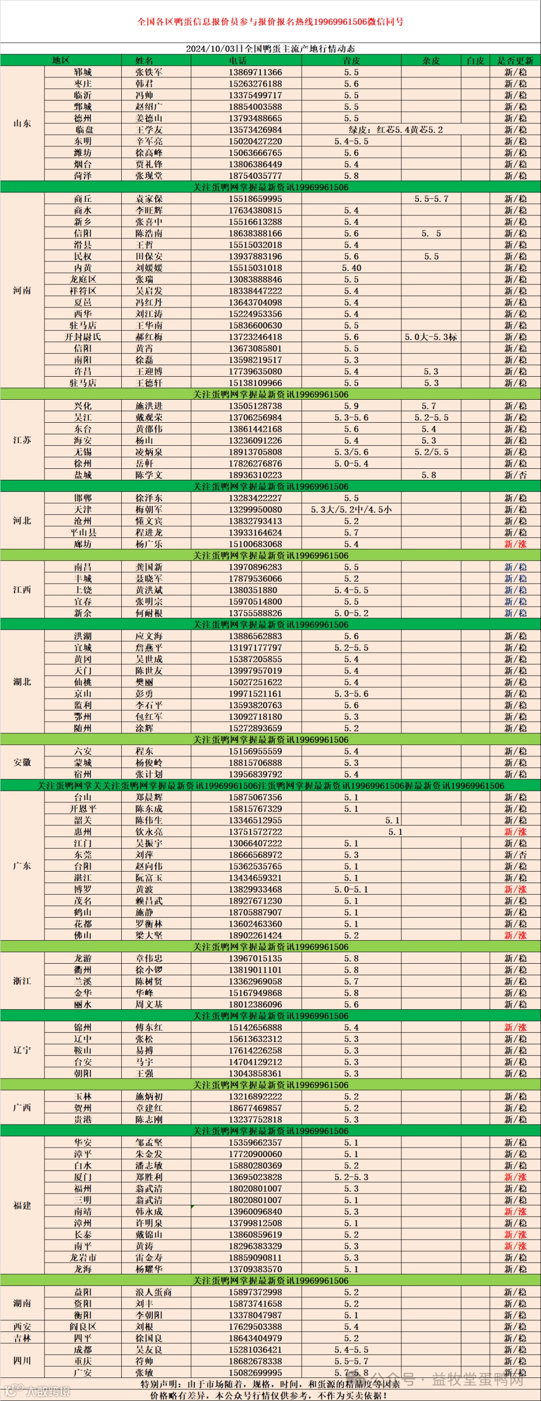 10月03日:开产至10个头4元,10个至9个头4.5元,9个头以上5.4元(红心)