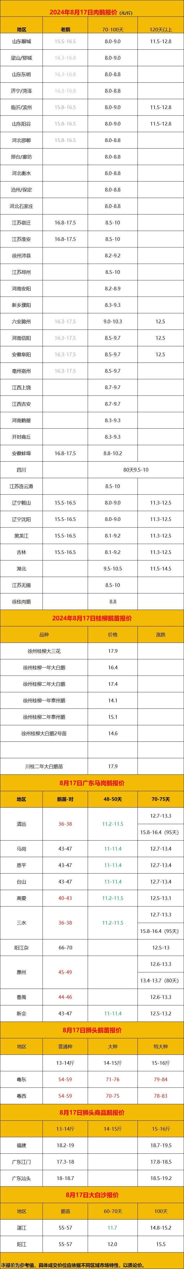 2024年8月17日鹅价快报 益牧堂水禽信息