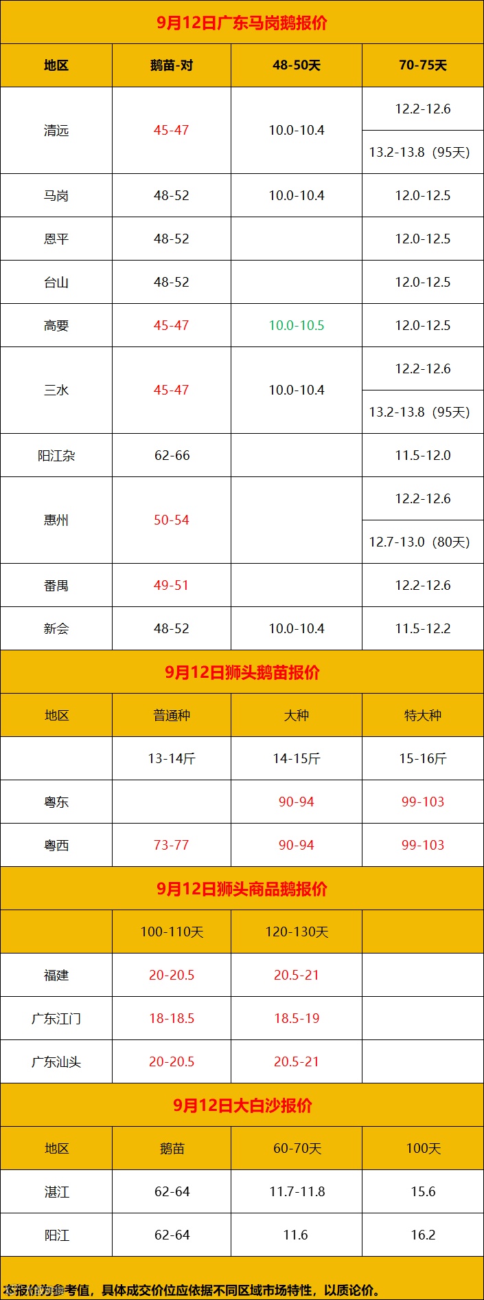 2024年9月12日鹅价快报