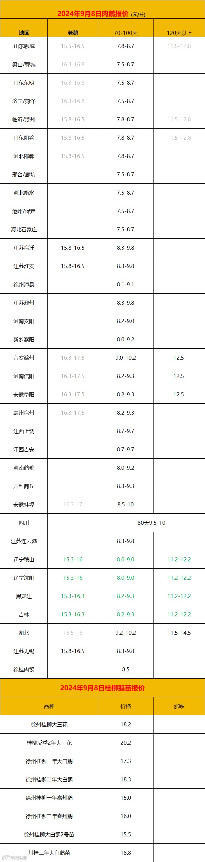 2024年9月8日鹅价快报