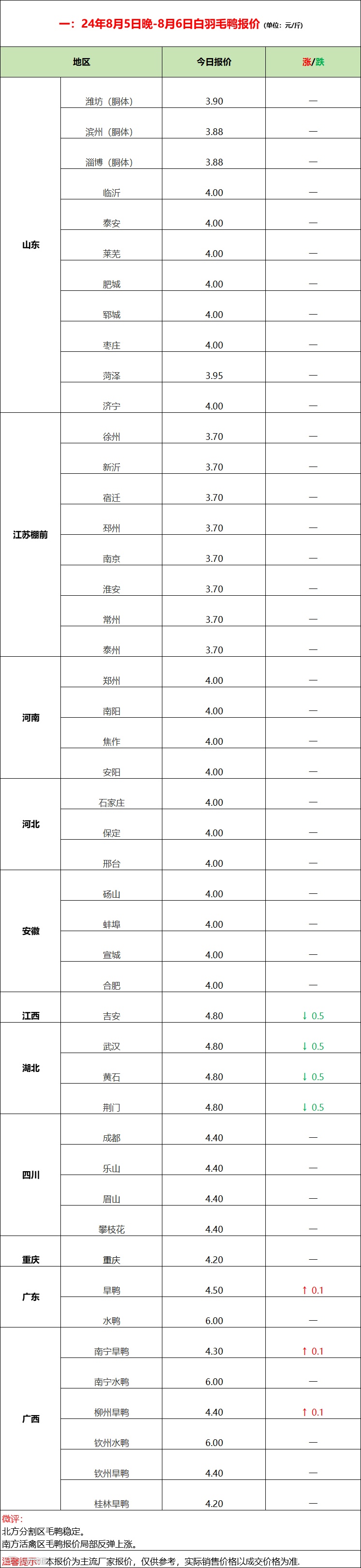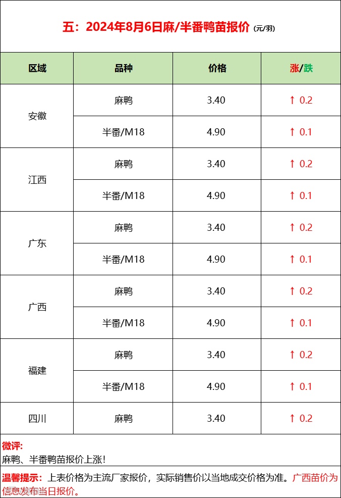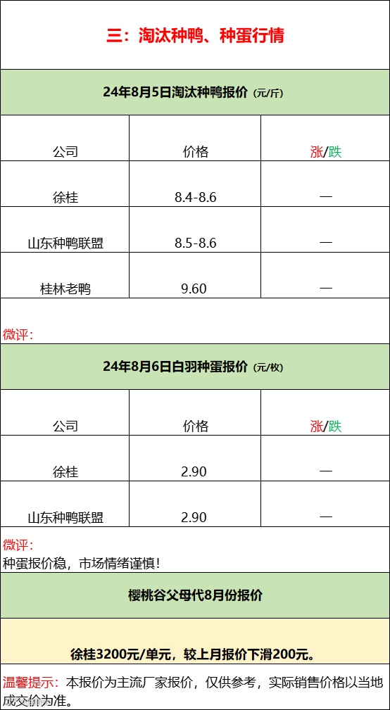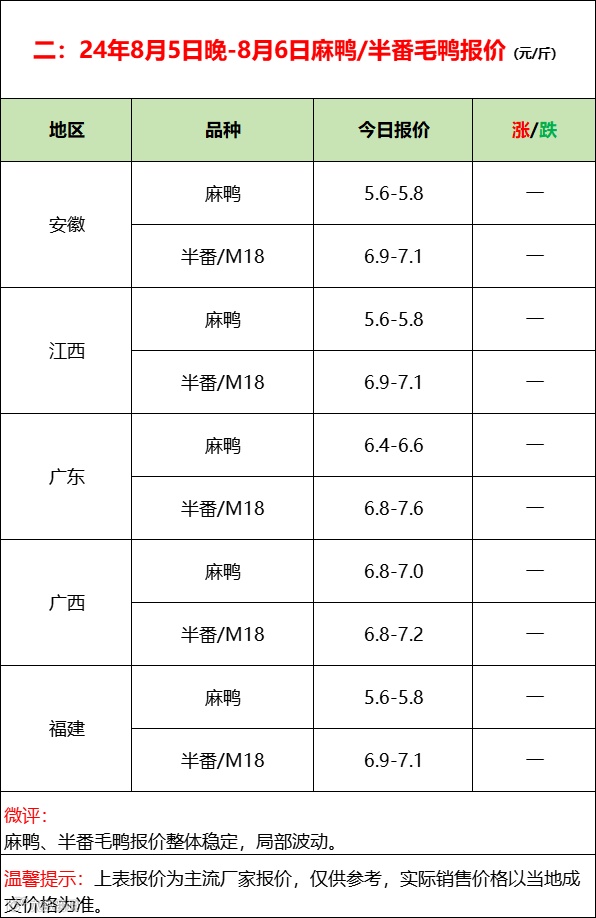 鸭苗全线报稳,活禽控盘挺价;--2024年8月6日水禽行情简报