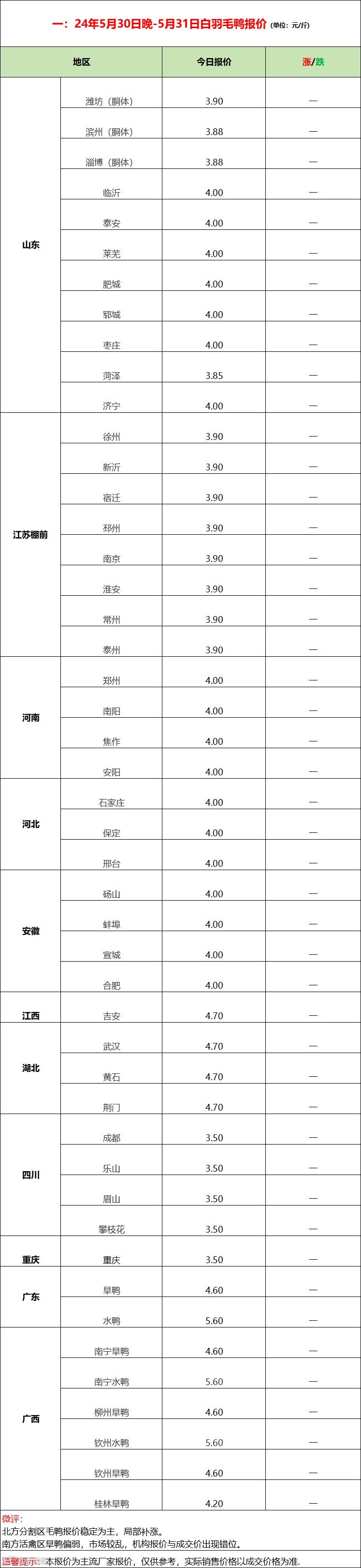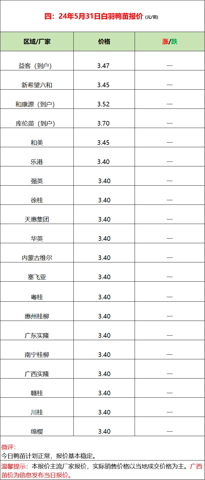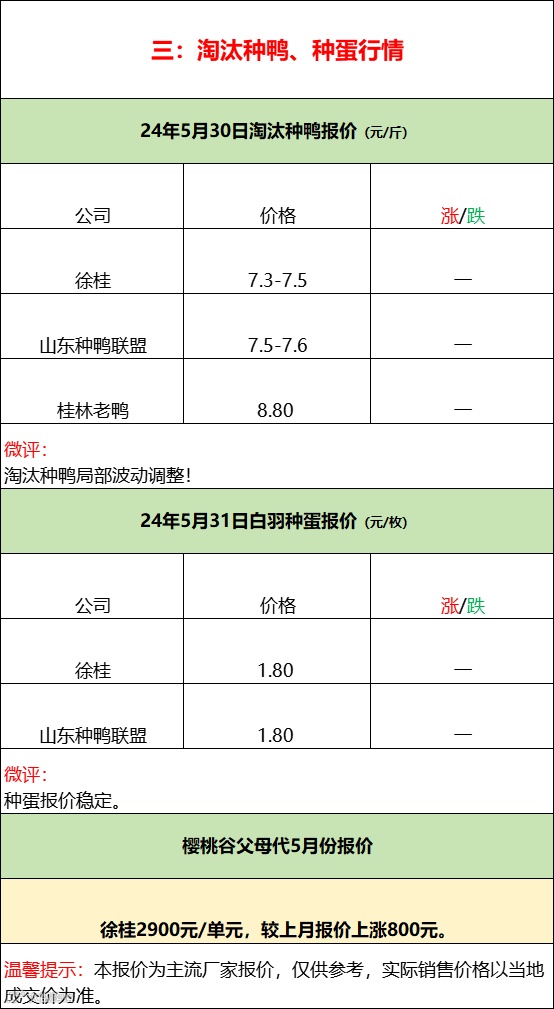 2024年5月31日水禽行情简报 益牧堂水禽信息