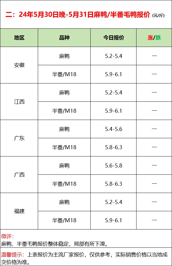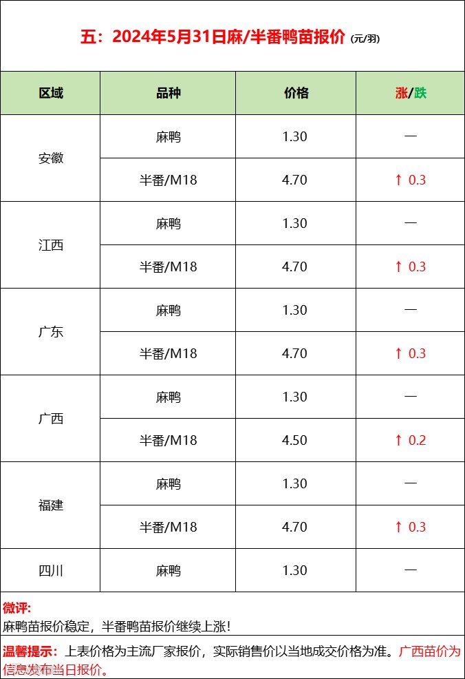 2024年5月31日水禽行情简报