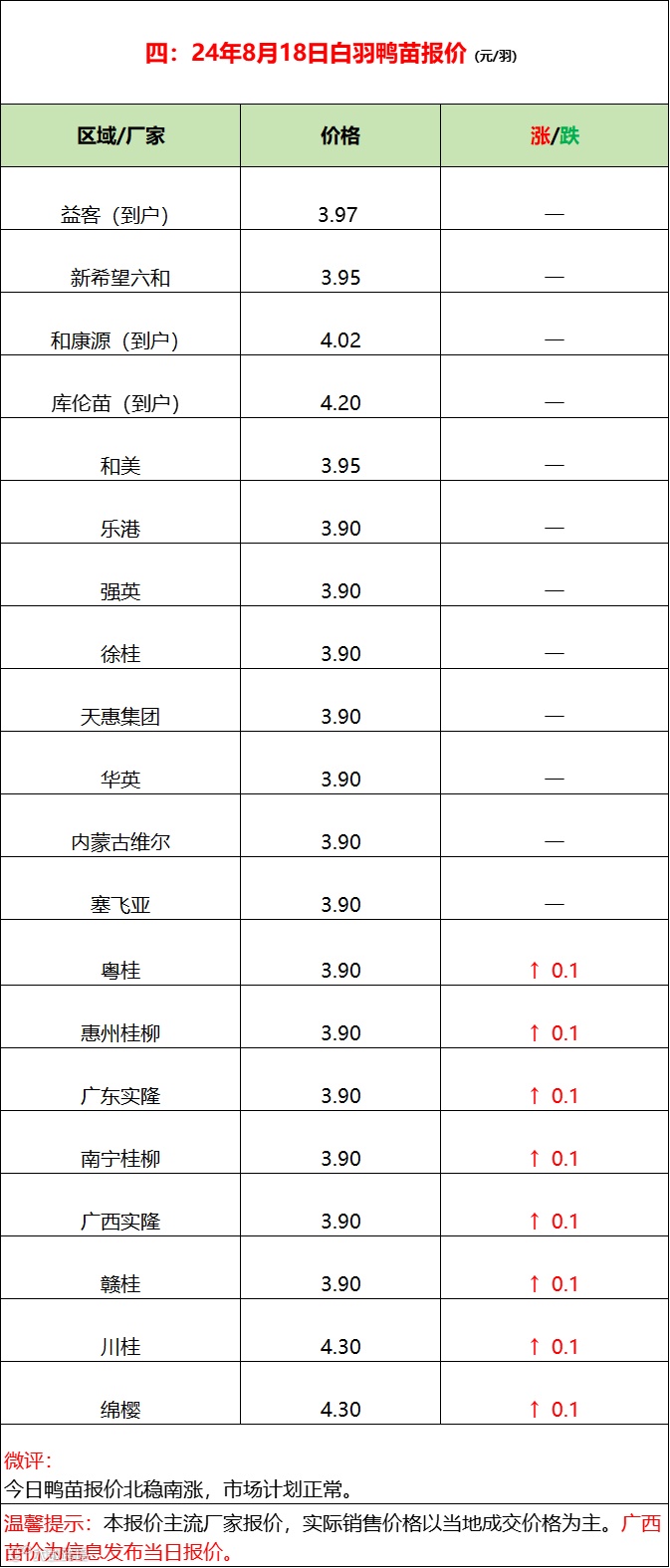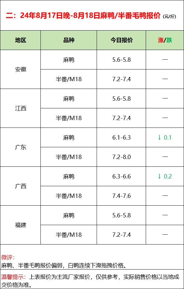 鸭苗南涨北稳,态势仍强;产品波动调整,疲惫依旧!--2024年8月18日水禽行情简报 益牧堂水禽信息