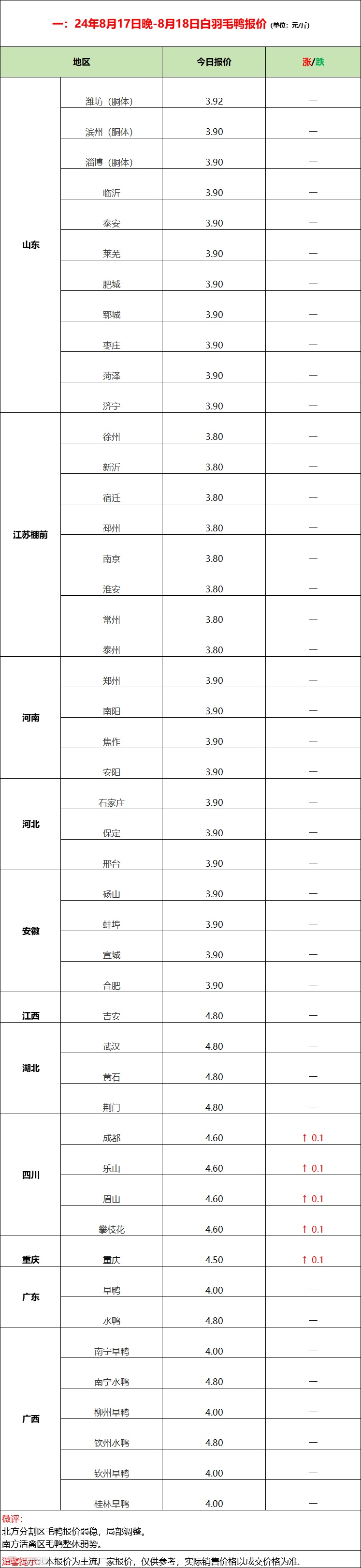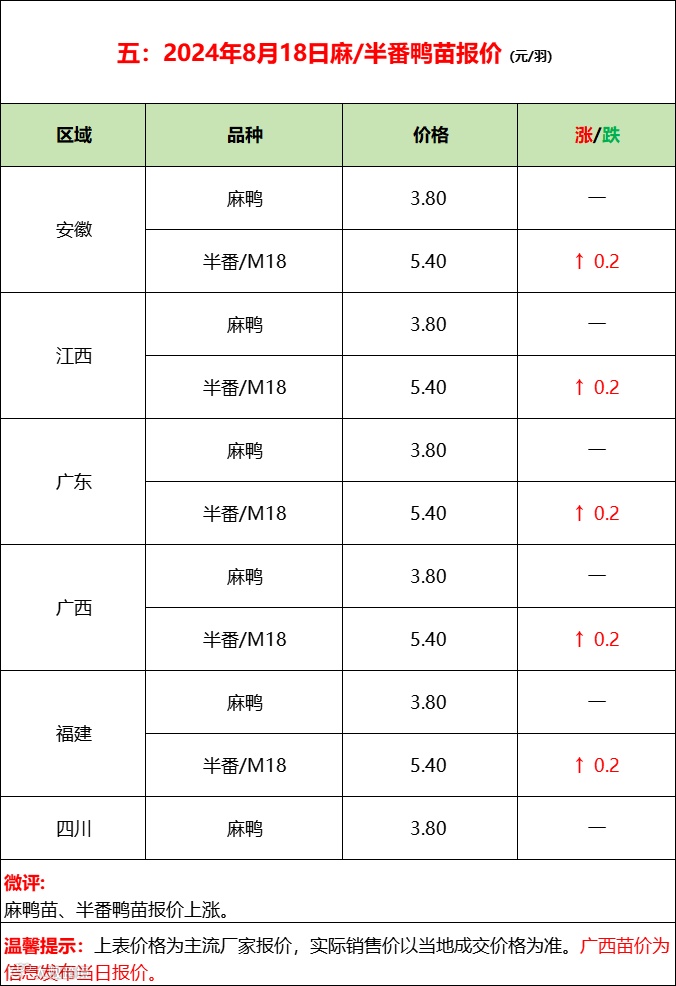 鸭苗南涨北稳,态势仍强;产品波动调整,疲惫依旧!--2024年8月18日水禽行情简报