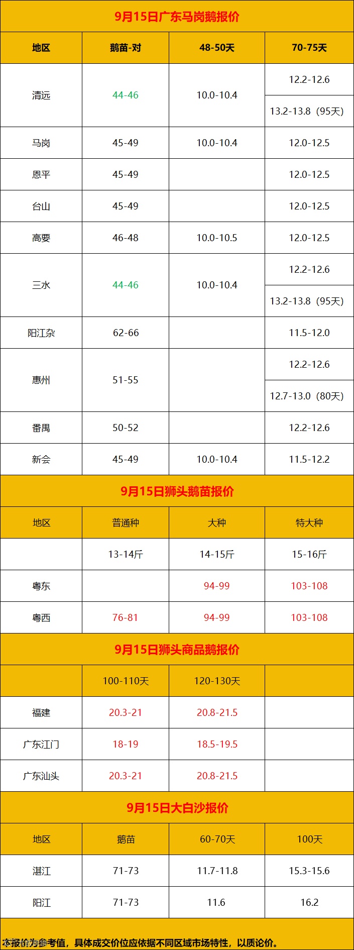 2024年9月15日鹅价快报