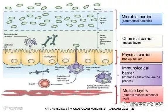 展开来讲,结构屏障指细胞和细胞所组成的组织器官对外来物质的机械障碍,这就要求它们的结构必须完好无损。动物机体中一切与外界相通的表面均是外来物质侵袭的第一道关口,比如皮肤,呼吸道,胃肠道。其中,肠道因为其内腔表面有无数被称为绒毛或微绒毛的小褶皱,展开来面积最大,成为结构屏障的最大部位。