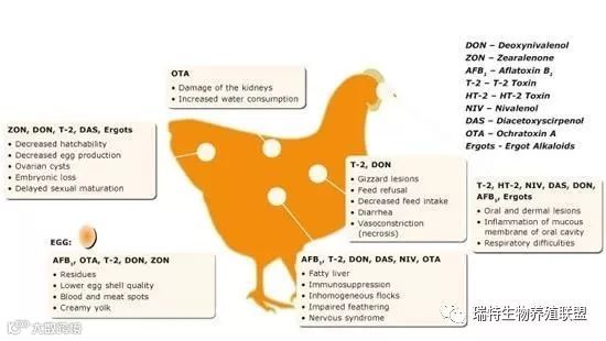 常见霉菌毒素对家禽的影响(引自BIOMIN)