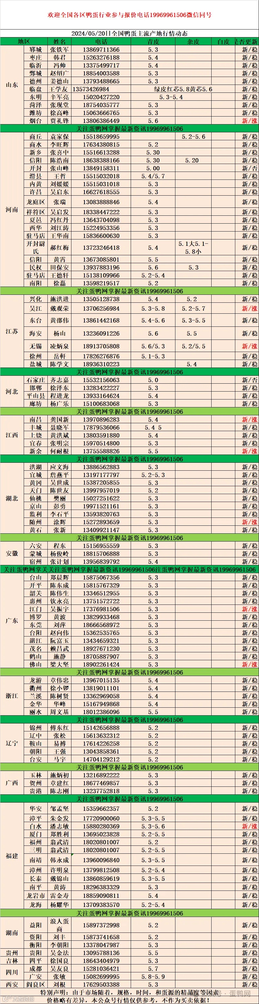2024年5月20日商品鸭蛋报价