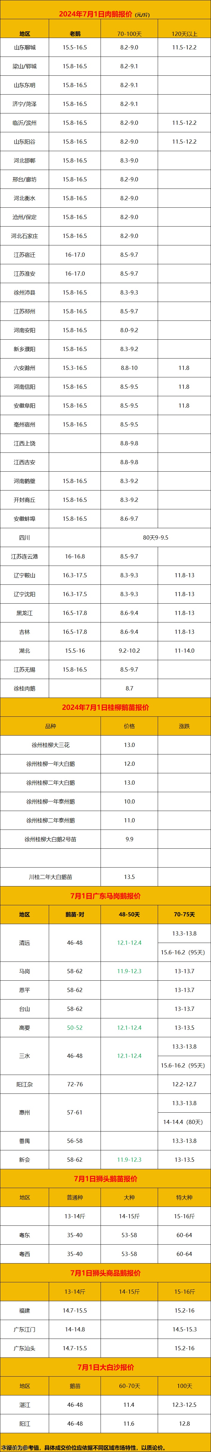 2024年7月01日各品种鹅苗价格