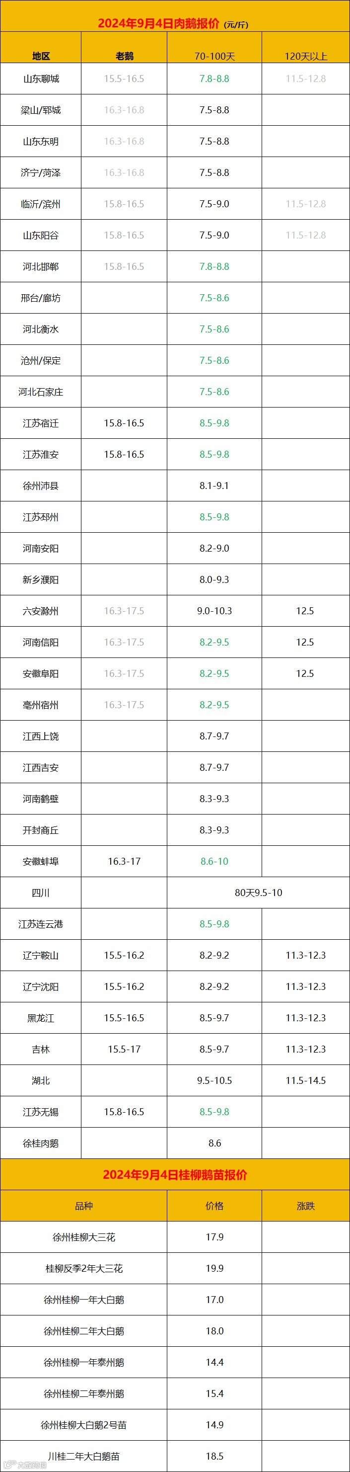 徐州淮安:一年三花种蛋7.2-7.4 泰州-种蛋6.9-7.1