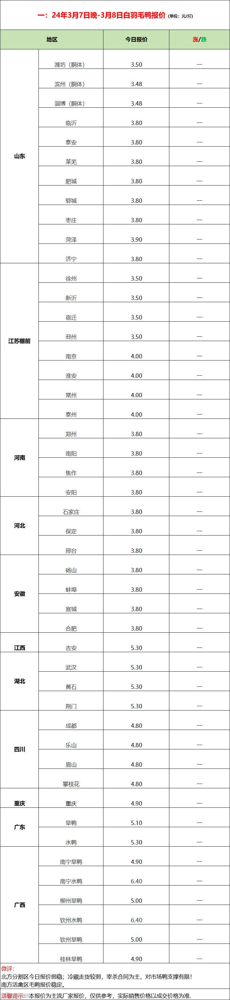 北方毛鸭较弱,收购积极性一般,整体报价低位徘徊,上行支撑匮乏。