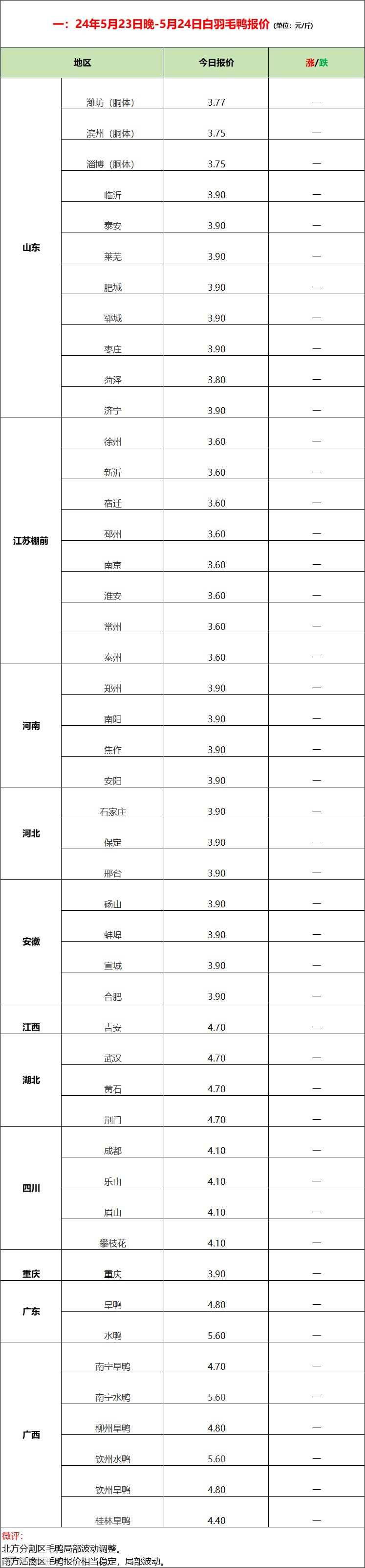 2024年5月24日水禽行情简报 益牧堂水禽信息