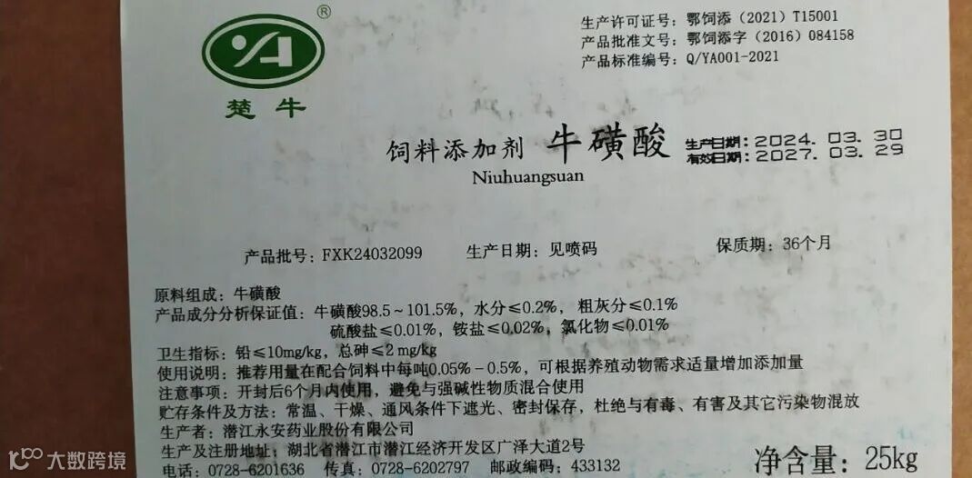 【用法用量】饲料添加,添加量为500-1000mg/kg饲料。