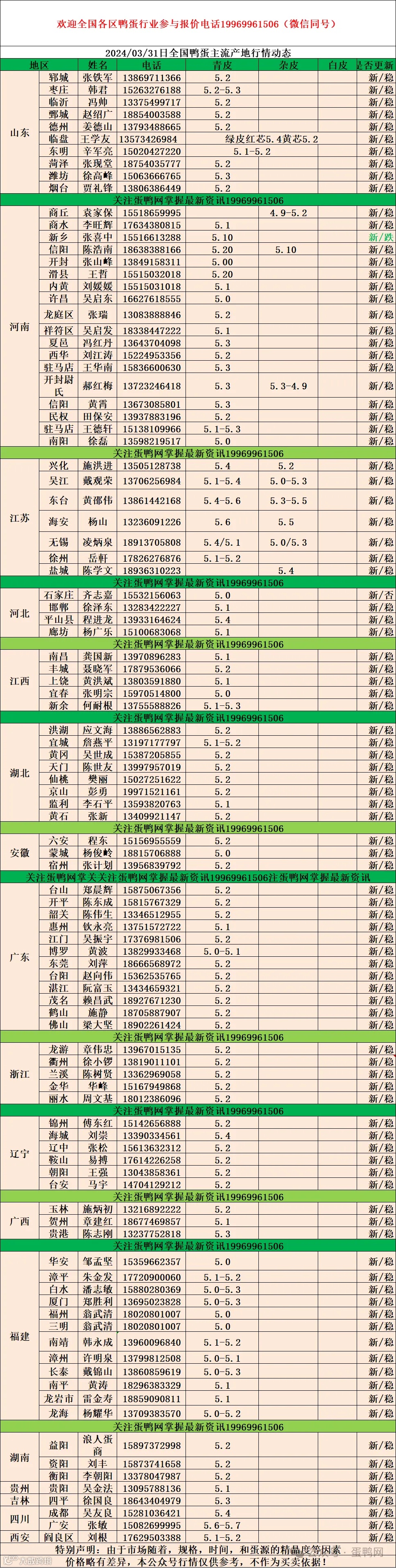 2024年3月31日商品鸭蛋报价