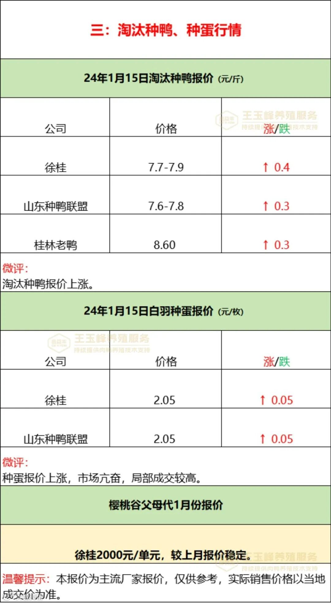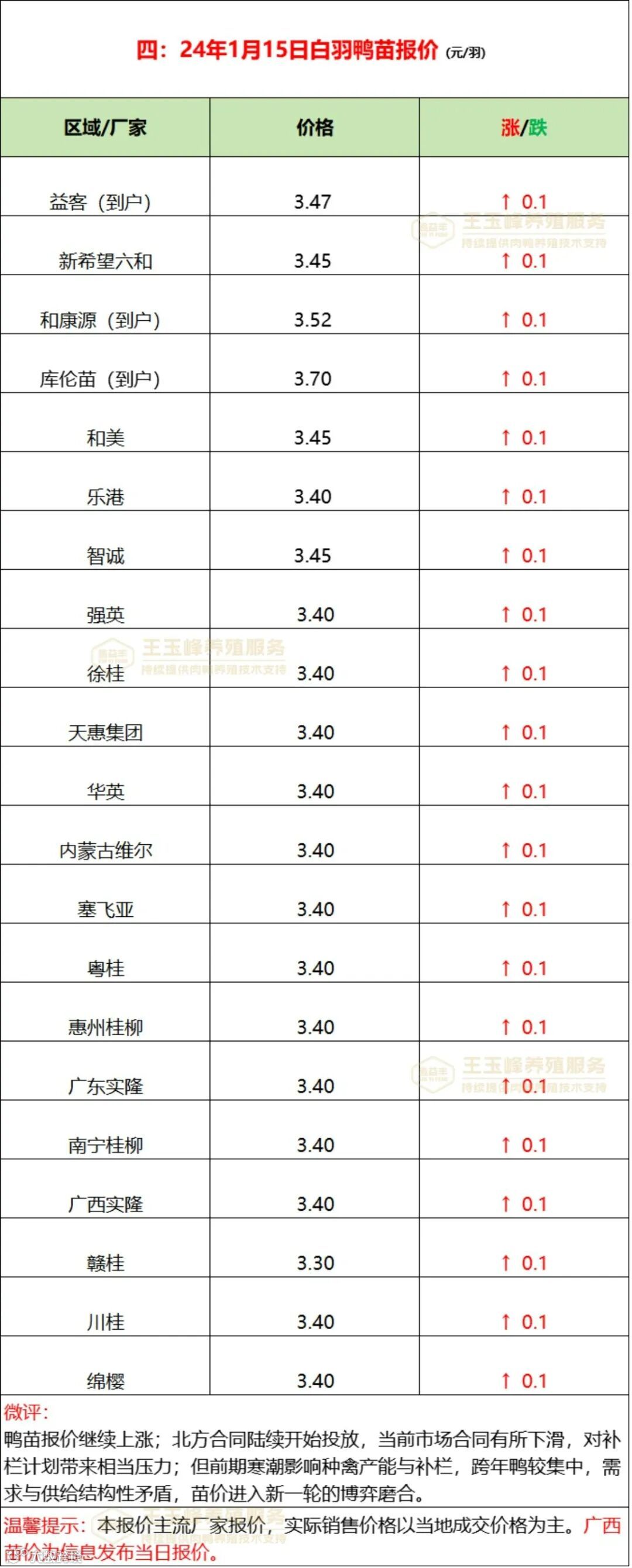 鸭苗报价继续上涨;北方合同陆续投放,当前市场合同有所下滑,对补栏计划带来相当压力;但前期寒潮影响种禽产能与补栏,跨年鸭较集中,需求与供给结构性矛盾,苗价博弈磨合中。