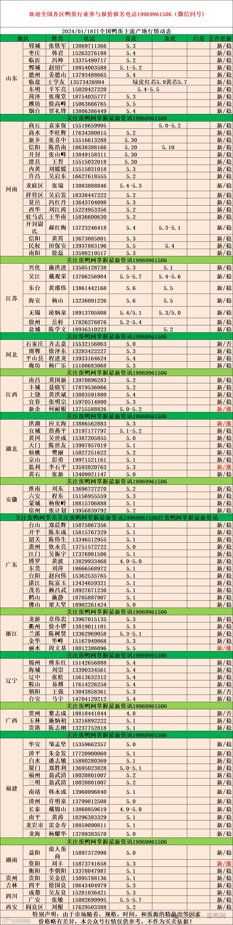 2024年1月18日商品鸭蛋报价