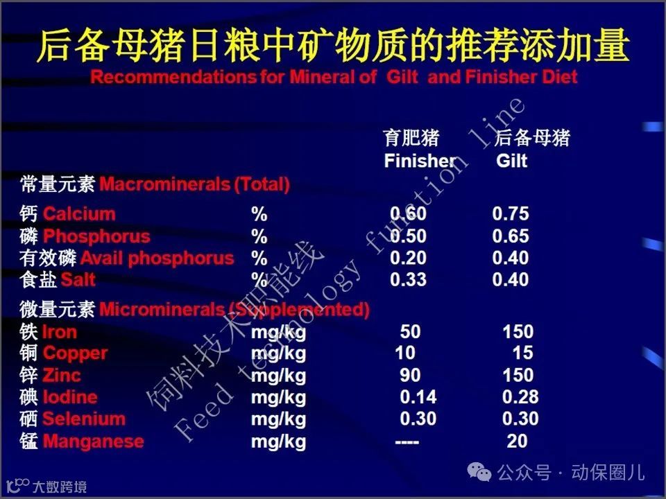 ②硫是含硫氨基酸(半胱氨酸、蛋氨酸)的重要成分,也是硫胺素和生物素的组成成分,在碳水化合物代谢及蛋白质代谢中起着极其重要的作用。缺硫会影响胰岛素的正常功能,导致血糖增高,有时会引起食毛症,严重影响毛皮品质。