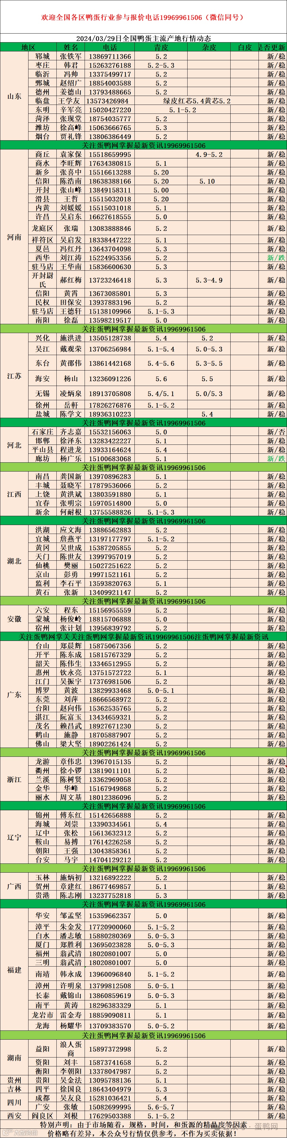 2024年3月29日商品鸭蛋报价