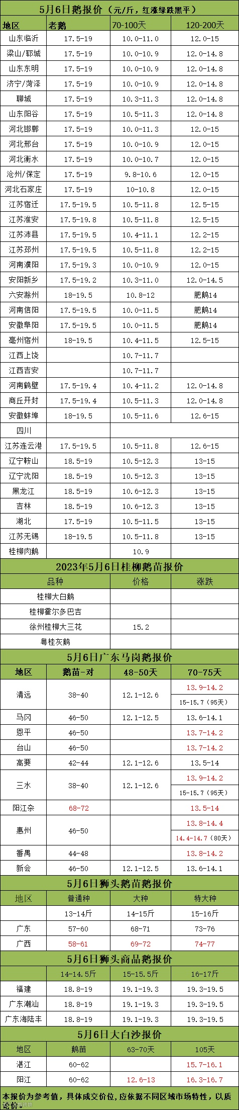 2023年5月06日各品种鹅苗价格