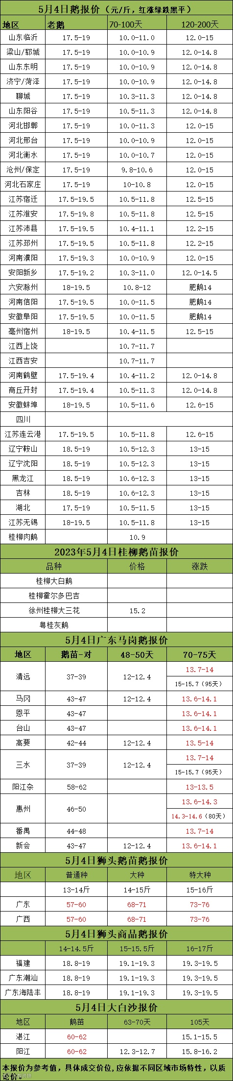 2023年5月04日鹅种蛋价格(元/枚)部分停报