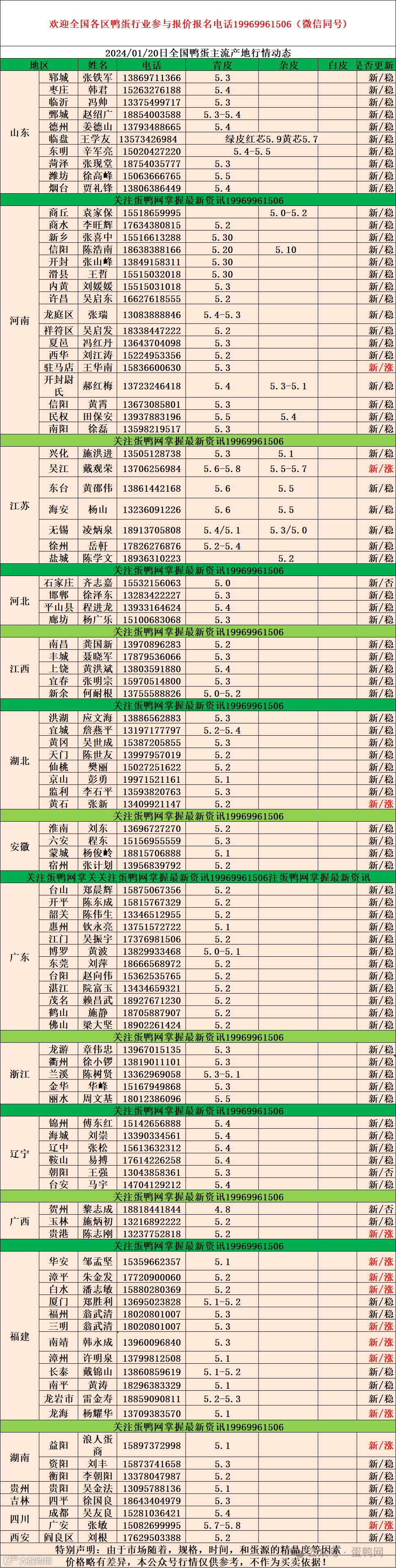 2024年1月20日商品鸭蛋报价