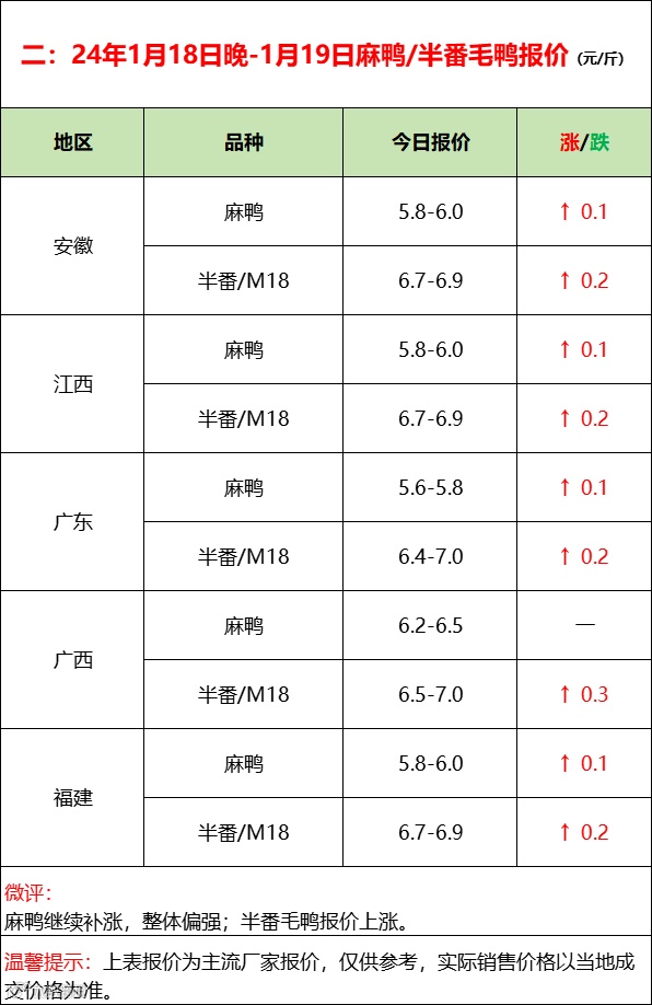 南方活禽区白鸭进入腊月消费支撑,整体较强,对麻番也有一定带动。