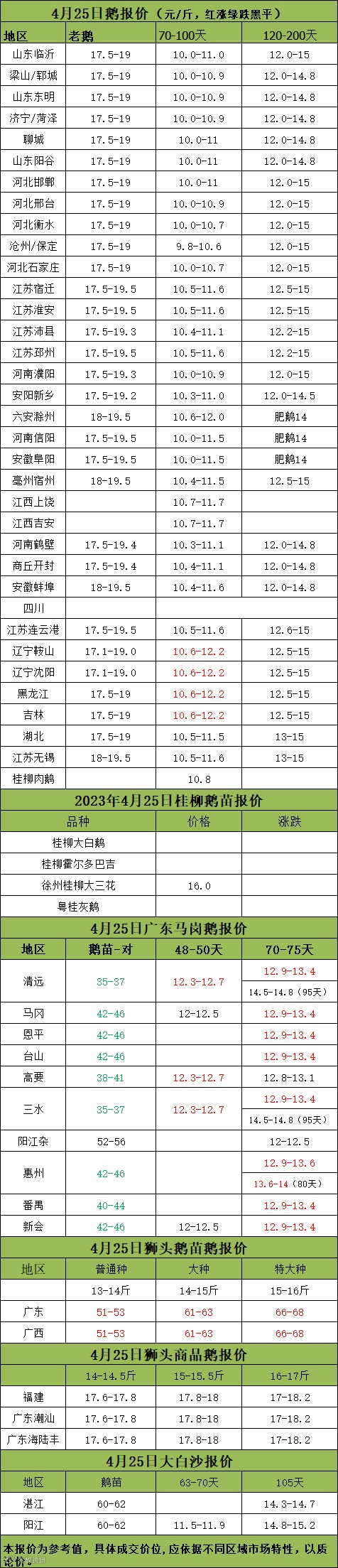 2023年4月25日鹅种蛋价格(元/枚)部分停报